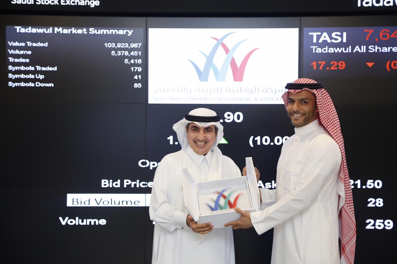 احتفلت الشركة الوطنية للتربية والتعليم و تداول بالادراج في السوق المالية السعودية ،، حيث بدأ الحفل في الساعة العاشرة صباحاً بتدشين الادراج وكلمة مدير عام الادارة العامة للأسواق في تداول والتي أشاد في الجهود التي بذلت من الوطنية للتعليم لادراجها ضمن السوق السعودي الرئيسي للاسهم كثاني شركة تدرج خلال عام ٢٠١٨م. ثم كلمة نائب رئيس مجلس الادارة والعضو المنتدب للشركة الوطنية للتربية والتعليم والذي شكر بدوره فريق العمل والكادر البشري للشركة حيث انهم اساس النجاح في هذا المشروع. كما قدم شكره للمساهمين ومجلس الادارة على دعمهم وثقتهم. بالاضافة لشكر شركاء النجاح المحوريين في هذا المشروع ولهيئة سوق المال وتداول. واختتم الحفل بتوقيع اللوحات التذكارية وتبادل الدروع التذكارية والتقاط الصور الجماعية.